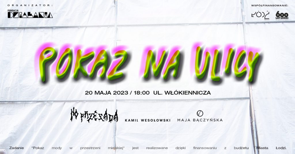 „POKAZ NA ULICY ” to projekt Fundacji Działania, w którym zamieniliśmy rewitalizowaną ulicę Włókienniczą na wybieg mody. 20 maja 2023 o godzinie 18:00 można było zobaczyć kolekcje osób projektujących, znanych z niekonwencjonalnych pomysłów i awangardowego podejścia do mody. Martyna Konieczny, Maja Bączyńska i Kamil Wesołowski to trzy różne perspektywy w sztuce mody.Artystki tworzące w Łodzi – w ich twórczości można zobaczyć świeże spojrzenie na rzeczywistość i odniesienia do własnych korzeni i otaczającego świata. Tworzą modę, która wychodzi poza swoje granice.. Moda jest dla nich tworzywem, dzięki któremu mogą wyrażać swój indywidualny styl.
